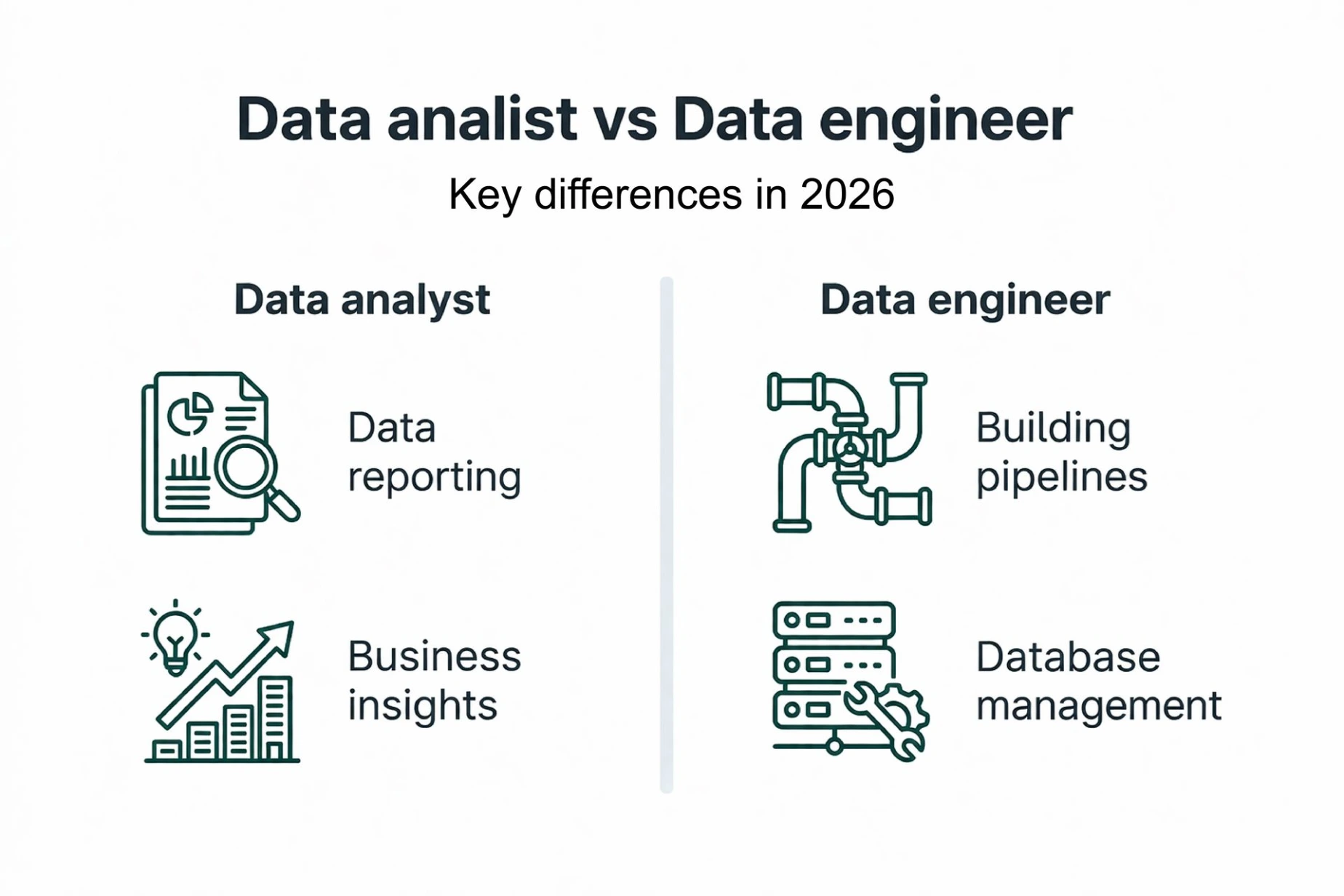 | Fundamentally different focus | Data analysts focus on interpretation and reporting; engineers focus on infrastructure and data pipelines |